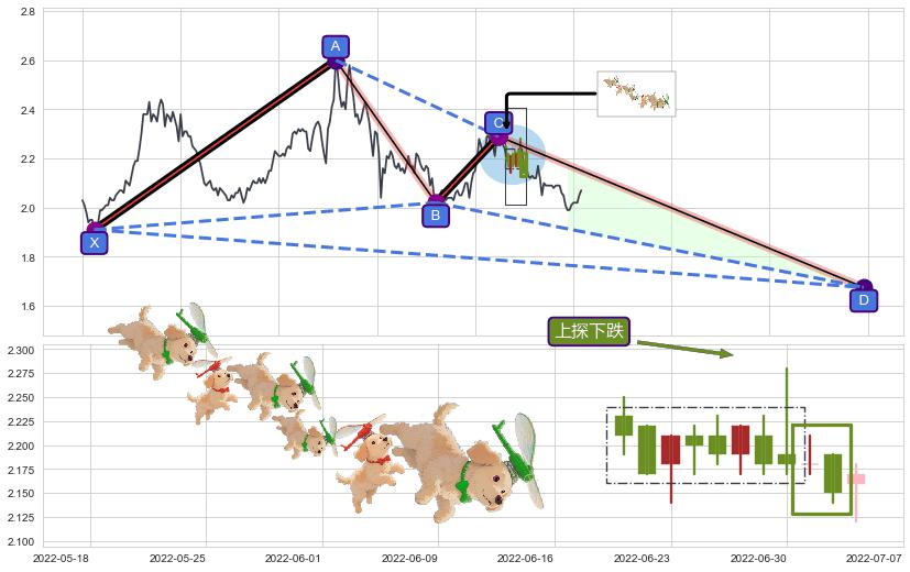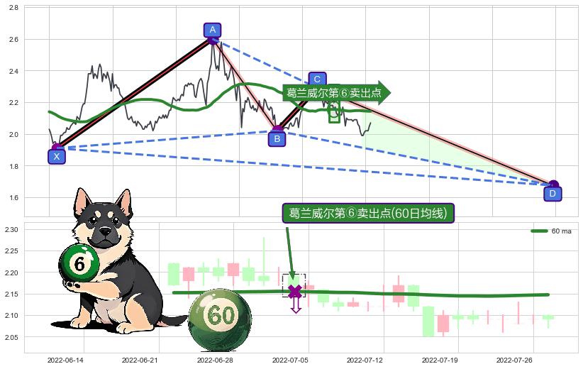 ➣ D点拟合预测价格1.6752,距离最后交易收盘价格2.070相差 -19.07%