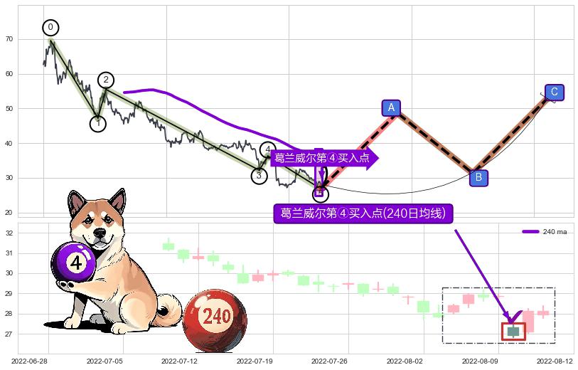 | 2 🅚:【高山滑雪】买入点 ➕ 🌊:波浪理论猜想下跌浪5已形成,猜想后续形成abc反弹上涨(均值回复) ☞ 看多信号 ⇥ 【均线】交织【图形】⇥ 综合量化分数: 52 | > |