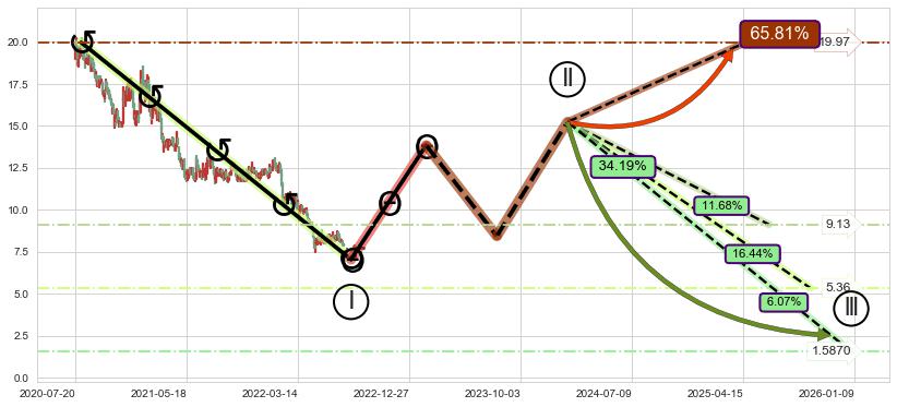 ♘ 在最后的下跌阶段2020-08-03至2022-08-12,存在 持续未破位的阻力位 ,阻力价格9.60,可信任强度88.10%,其距离最后价格7.76相差 +23.76%