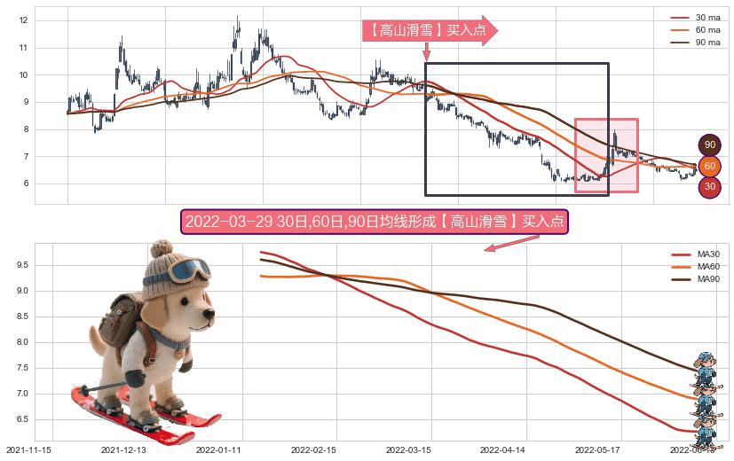 形态多维评估: ⚀ 2022-01-17日-2022-06-09日显现 30日-60日-90日均线 【高山滑雪】买入点 看多信号,后市看涨,买入