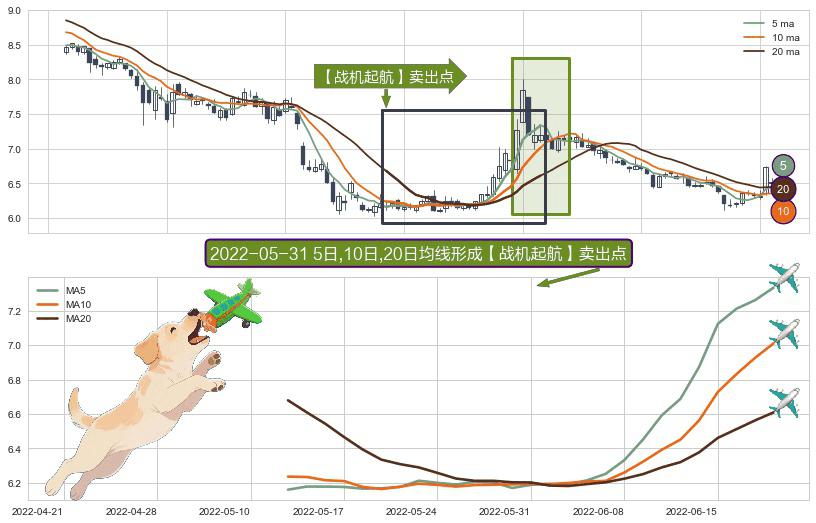 形态多维评估: ⚀ 2022-05-12日-2022-06-20日显现 5日-10日-20日均线 【战机起航】卖出点 看空信号,后市看跌,卖出