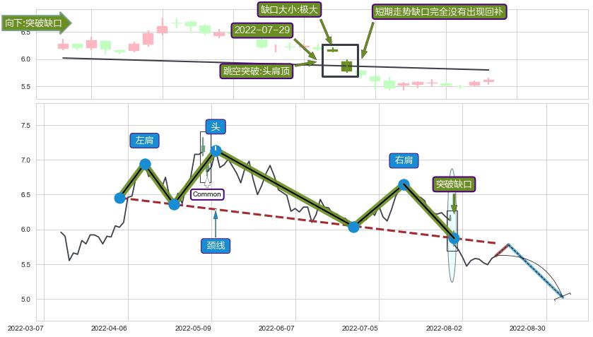 ➢ 【卖1】: 激进型 卖点→(2022-07-29: 5.87 )形成突破头肩顶【反转】形态