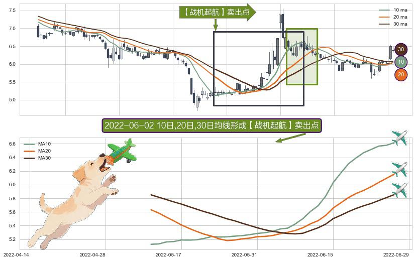 ⚀ 2022-05-11日-2022-06-27日显现 10日-20日-30日均线 【战机起航】卖出点 看空信号,后市看跌,卖出
