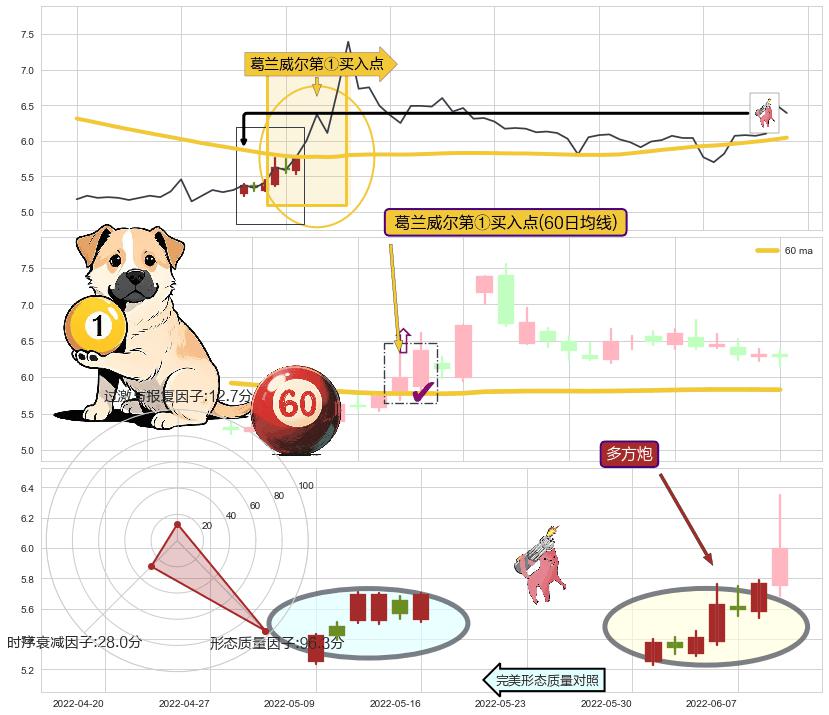| 3 🅚:塔形底 | 圆底 ➕ 🎢:葛兰威尔第①买入点买入点信号形成后,猜想后续下跌趋势反转上涨趋势(均值回复) ☞ 看多信号 ⇥ 【均线】交织【🅚线】⇥ 综合量化分数: 51 | > |
