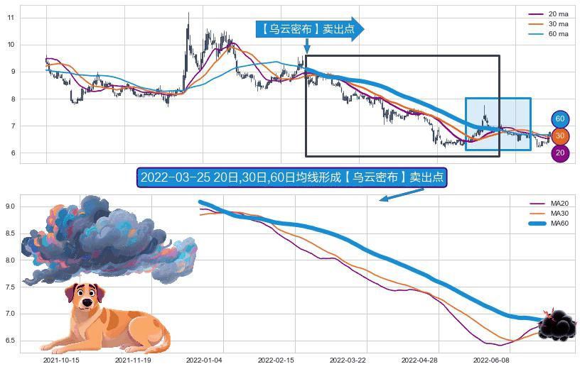形态多维评估: ⚀ 2021-12-14日-2022-06-28日显现 20日-30日-60日均线 【乌云密布】卖出点 看空信号,后市看跌,卖出
