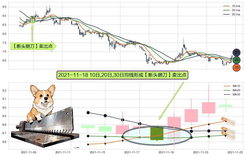 形态多维评估: ⚀ 2021-11-18日显现 10日-20日-30日均线 【断头铡刀】卖出点 看空信号,后市看跌,卖出