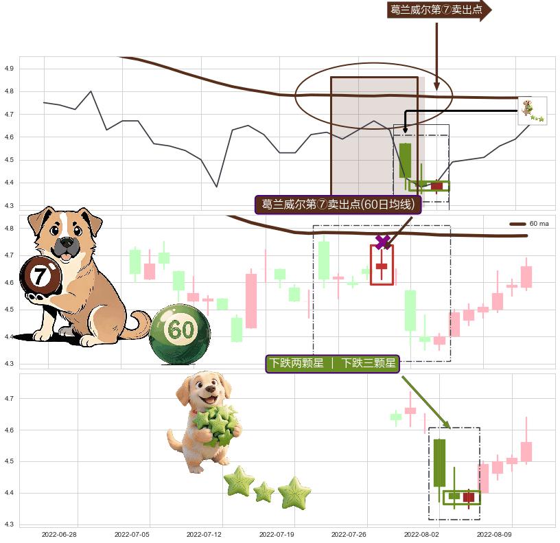 ➢ 高点影线(2022-08-10: 4.64 )→回踩→第一根k线低点(2022-08-01: 4.59 )