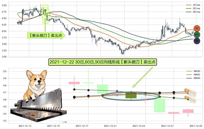 形态多维评估: ⚀ 2021-12-22日显现 30日-60日-90日均线 【断头铡刀】卖出点 看空信号,后市看跌,卖出