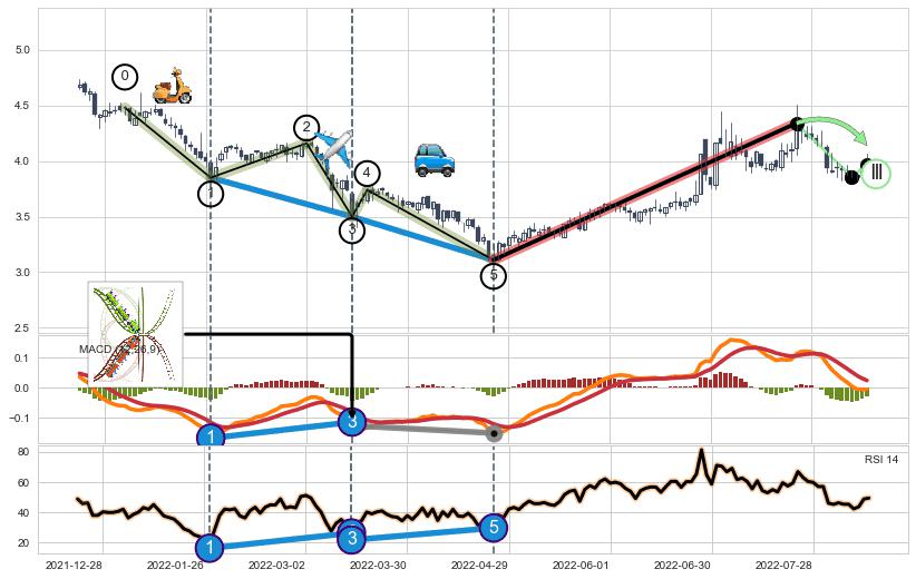 ➢ 第五驱动浪【动能】:🚙 73.84%, 是3个下跌浪中【中等】动能