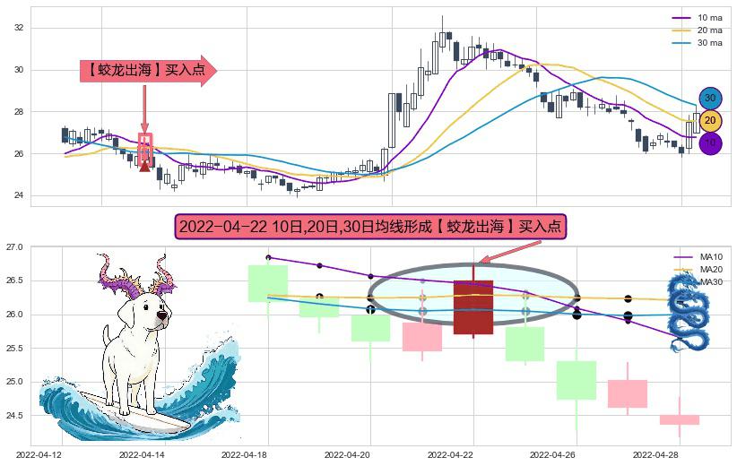 ⚀ 2022-04-22日显现 10日-20日-30日均线 【蛟龙出海】买入点 看多信号,后市看涨,买入