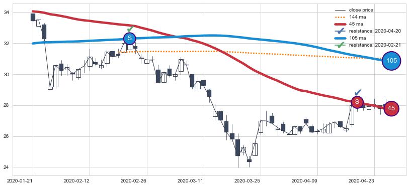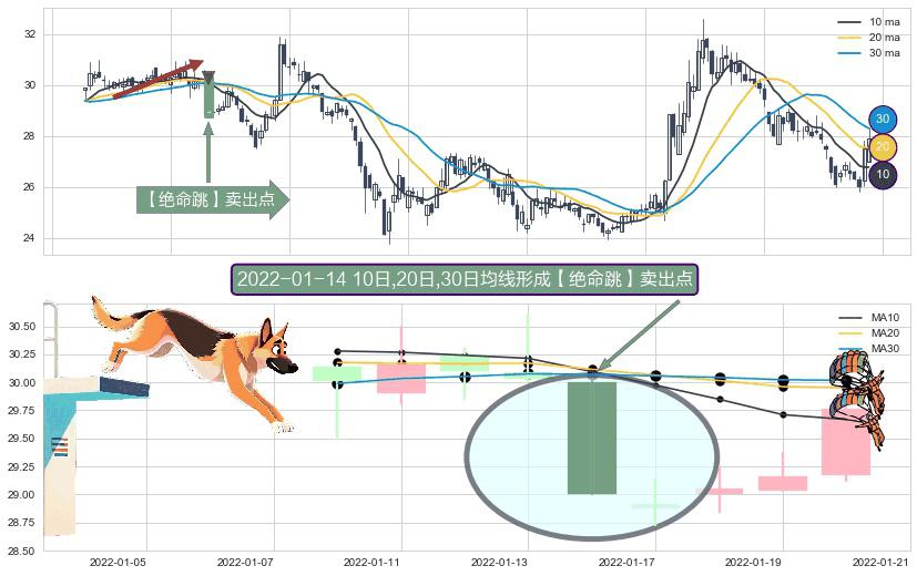 ⚀ 2022-01-14日显现 10日-20日-30日均线 【绝命跳】卖出点 看空信号,后市看跌,卖出