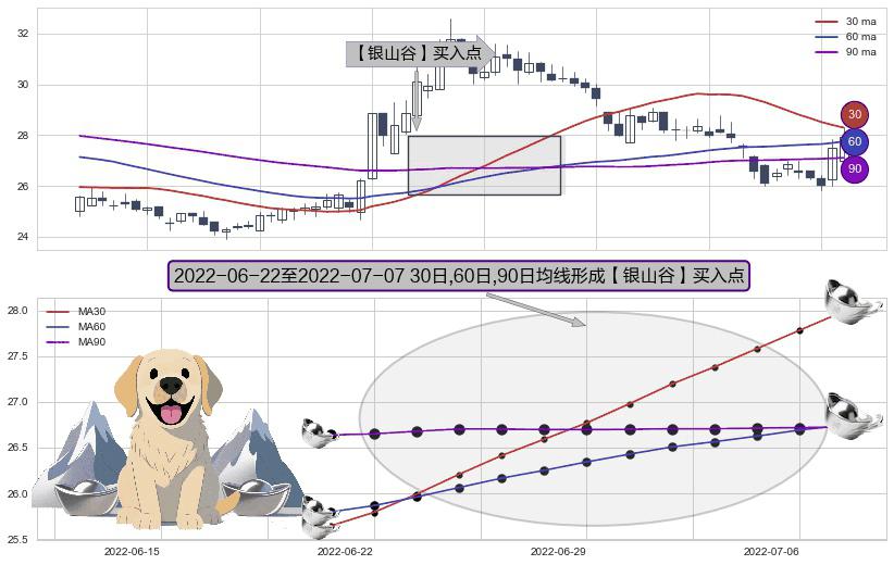 ⚀ 2022-06-23-日至2022-07-07-日显现 30日-60日-90日均线 【银山谷】买入点 看多信号,后市看涨,买入