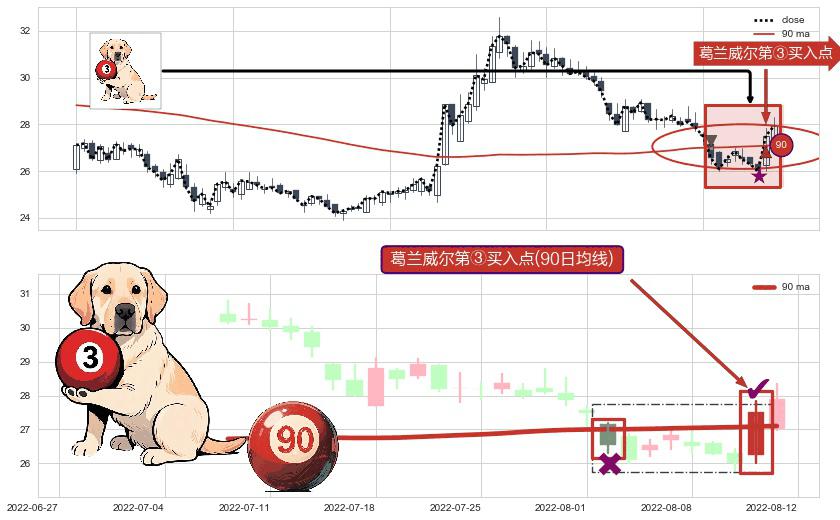 ⚀ 2022-08-11-日显现 葛兰威尔均线 90日均线 第③买入点 上升趋势的中继信号,后市看涨,买进信号