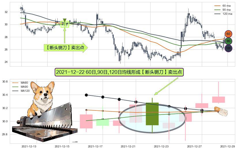 ⚀ 2021-12-22日显现 60日-90日-120日均线 【断头铡刀】卖出点 看空信号,后市看跌,卖出