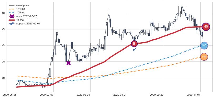 ⚄ 均线向下破位后价格下探力度低,负乖离率低,再次向上突破后维持原均线上涨趋势【强】