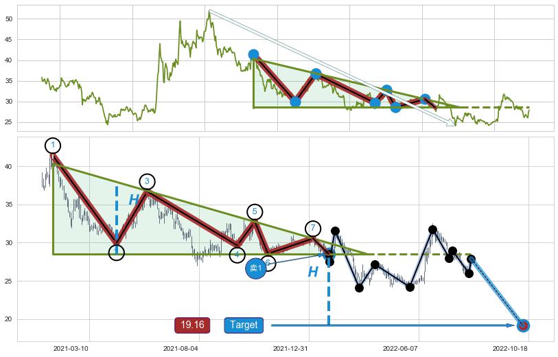 ➢ 【已确认突破】最后价格:27.91与最小【整理】第一目标价格→(2022-10-18: 19.16 )相较: 下跌空间【中等】