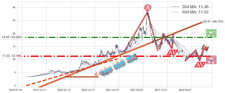 ♘ 支撑价格位11.33,可信任强度88.82%,距离最后交易2022-08-12形成的收盘价格12.90相差 -12.18%