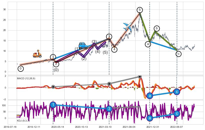 ➣ 第一, 三, 五浪上涨动能逐渐【增强变大】,趋势不断加固