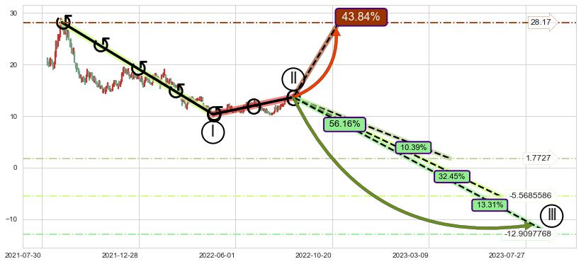 ➣ 循环浪继续向下【平均值】位置(2023-06-21, -5.5685586),匹配聚类样本比例57.78%, 可能性概率32.45%