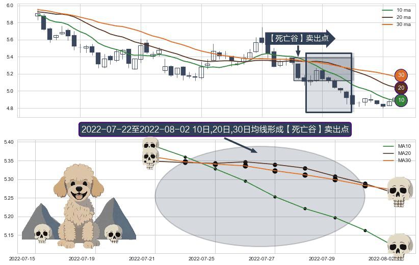 形态多维评估: ⚀ 2022-07-25-日至2022-08-02-日显现 10日-20日-30日均线 【死亡谷】卖出点 看空信号,后市看跌,卖出