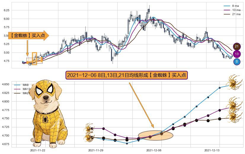形态多维评估: ⚀ 2021-12-06日显现 8日-13日-21日均线 【金蜘蛛】买入点 看多信号,后市看涨,买入