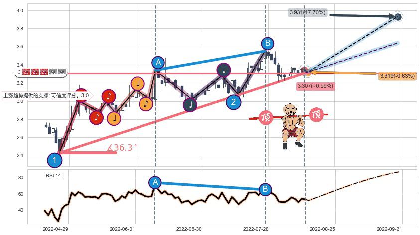 ➢ 预测:2022-08-15,【小幅回撤】稳定目前上涨趋势的前提下,预测价格:3.319
