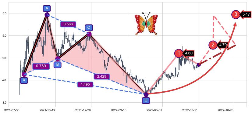 ➣ 已完成【蝴蝶】形态起点X: 2021-08-09, 终点D: 2022-04-26, 共172交易日