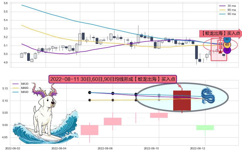 ⚀ 2022-08-11日显现 30日-60日-90日均线 【蛟龙出海】买入点 看多信号,后市看涨,买入