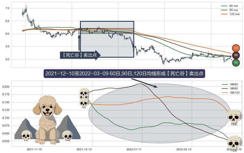 ⚀ 2021-12-13-日至2022-03-09-日显现 60日-90日-120日均线 【死亡谷】卖出点 看空信号,后市看跌,卖出