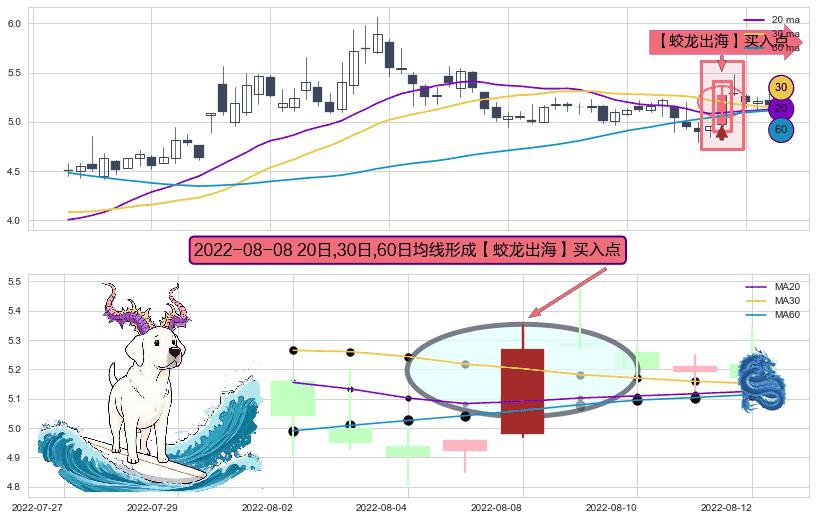 ⚀ 2022-08-08日显现 20日-30日-60日均线 【蛟龙出海】买入点 看多信号,后市看涨,买入