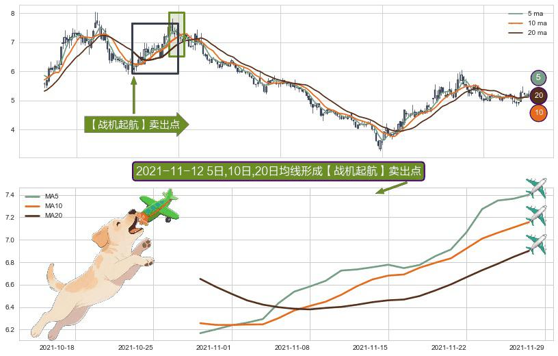 ⚀ 2021-10-28日-2021-11-26日显现 5日-10日-20日均线 【战机起航】卖出点 看空信号,后市看跌,卖出