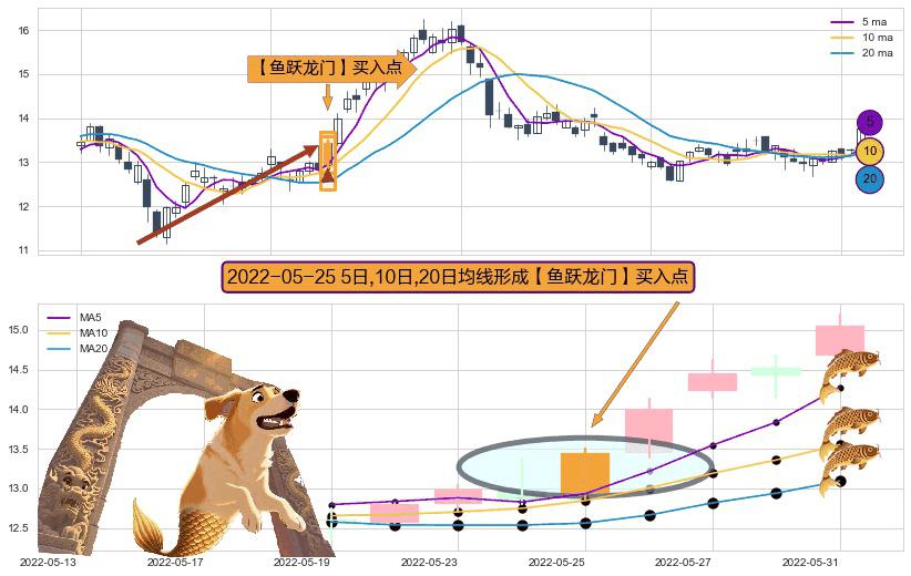 形态多维评估: ⚀ 2022-05-25日显现 5日-10日-20日均线 【鱼跃龙门】买入点 看多信号,后市看涨,买入