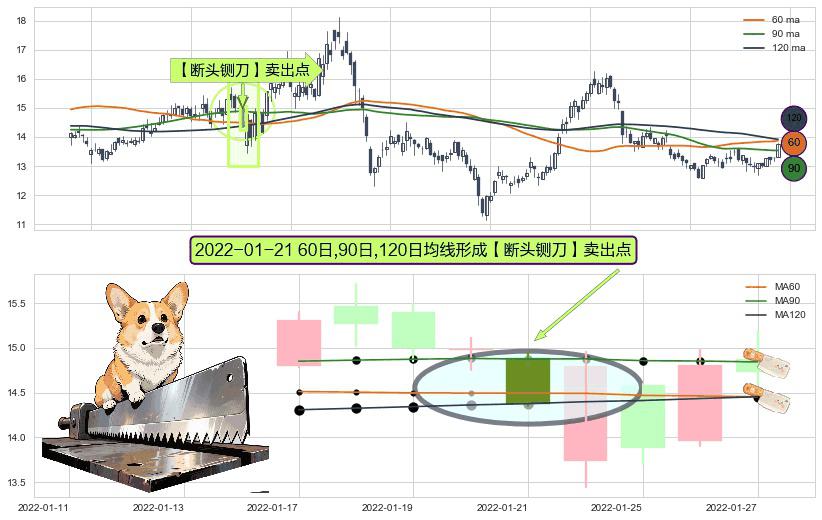 形态多维评估: ⚀ 2022-01-21日显现 60日-90日-120日均线 【断头铡刀】卖出点 看空信号,后市看跌,卖出