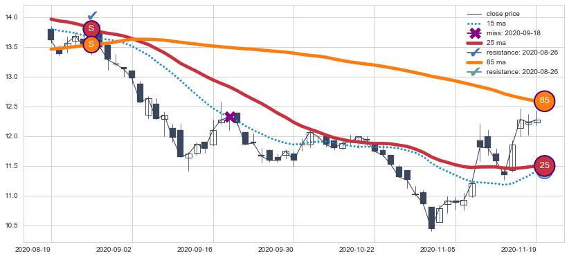 下跌趋势2020-08-19-2020-11-19,均线25, 85确认关键阻力1处
