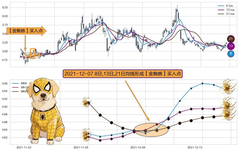 ⚀ 2021-12-07日显现 8日-13日-21日均线 【金蜘蛛】买入点 看多信号,后市看涨,买入