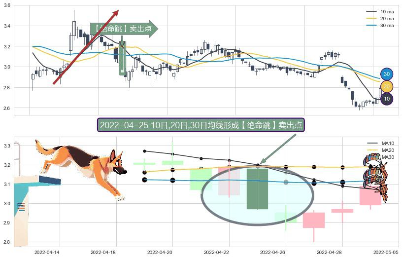 ⚀ 2022-04-25日显现 10日-20日-30日均线 【绝命跳】卖出点 看空信号,后市看跌,卖出