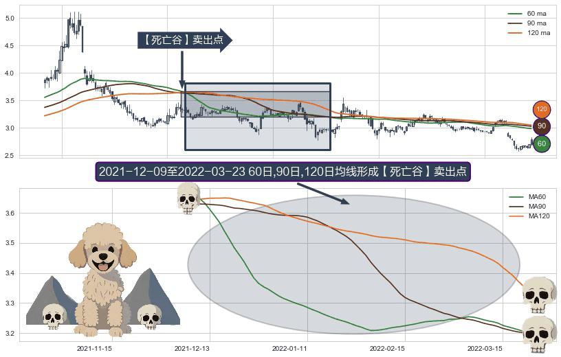 ⚀ 2021-12-10-日至2022-03-23-日显现 60日-90日-120日均线 【死亡谷】卖出点 看空信号,后市看跌,卖出