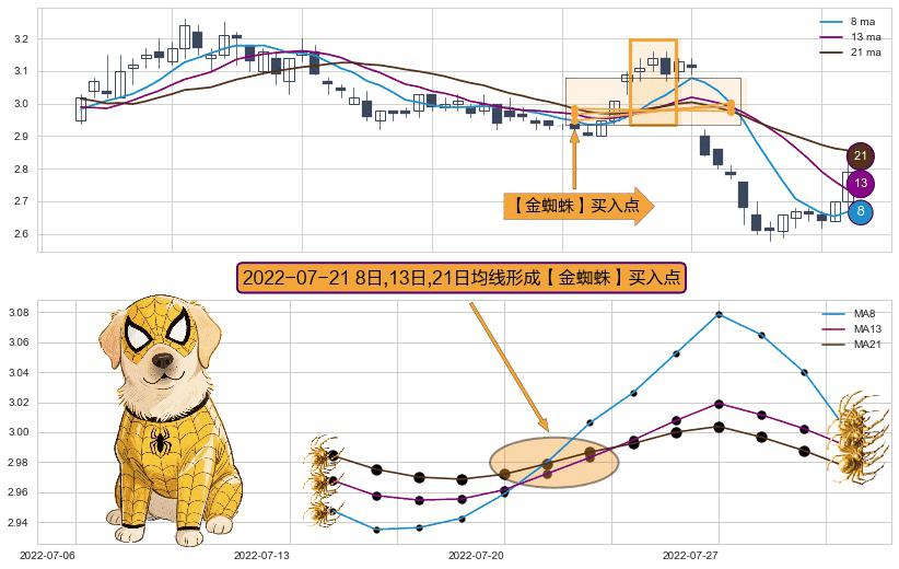 ⚀ 2022-07-21日显现 8日-13日-21日均线 【金蜘蛛】买入点 看多信号,后市看涨,买入