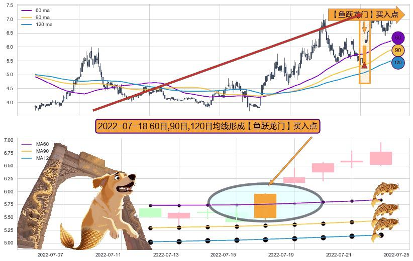 形态多维评估: ⚀ 2022-07-18日显现 60日-90日-120日均线 【鱼跃龙门】买入点 看多信号,后市看涨,买入