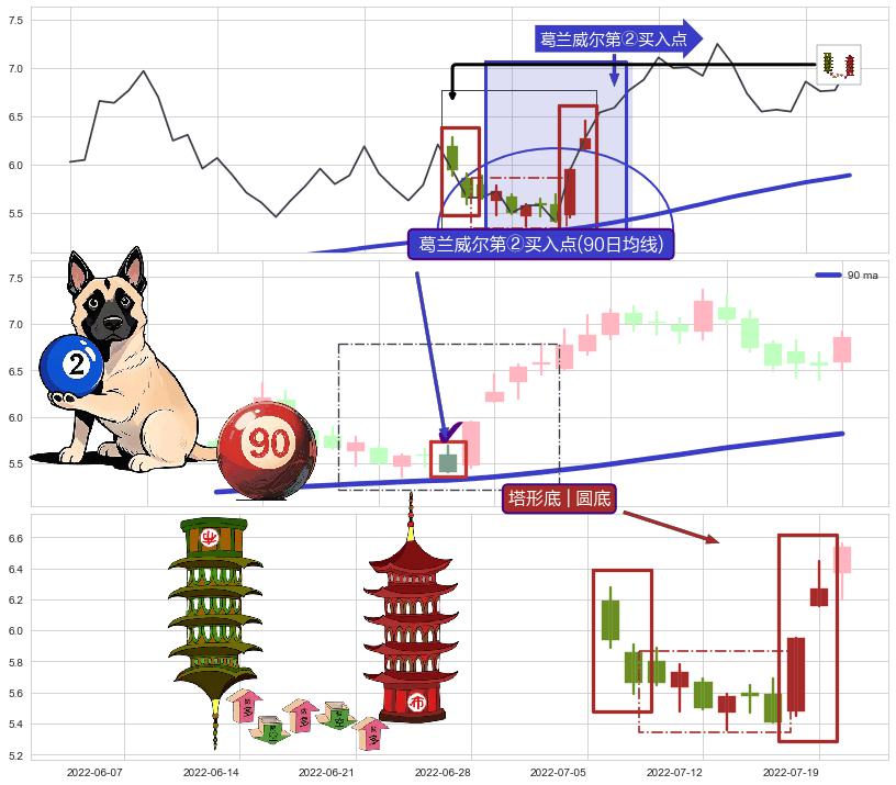➢ 收盘价(2022-07-12: 5.50 )→再次回踩→第一根k线高点(2022-07-04: 5.83 )