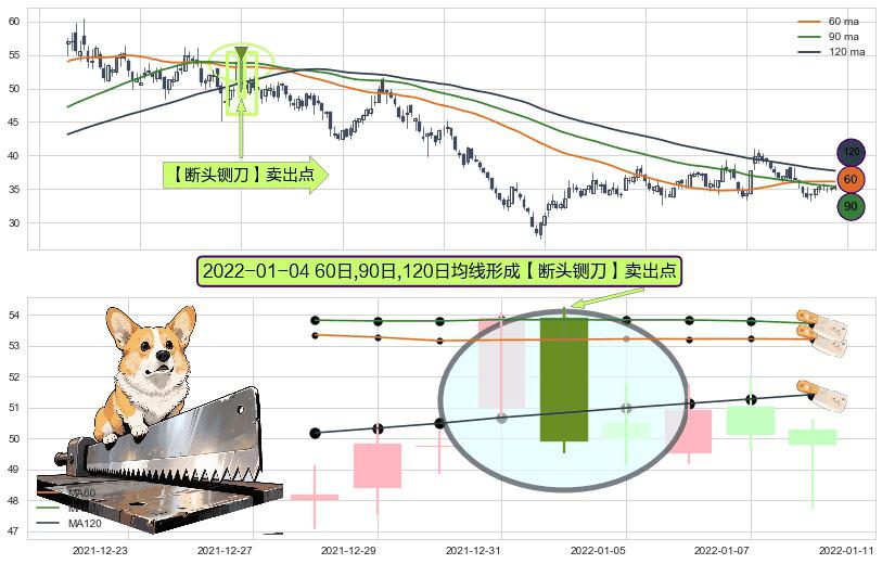 ⚀ 2022-01-04日显现 60日-90日-120日均线 【断头铡刀】卖出点 看空信号,后市看跌,卖出