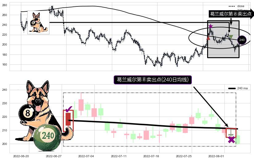 ⚀ 2022-08-02-日显现 葛兰威尔均线 240日均线 第⑧卖出点 下降趋势的中继信号,后市看跌,卖出信号