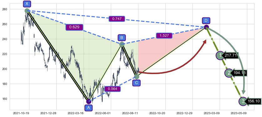 ➣ 未完成【蝴蝶】形态起点X: 2022-06-22, 已到达C点: 2022-07-28, 预测最终D点: 2022-09-26, 共65交易日