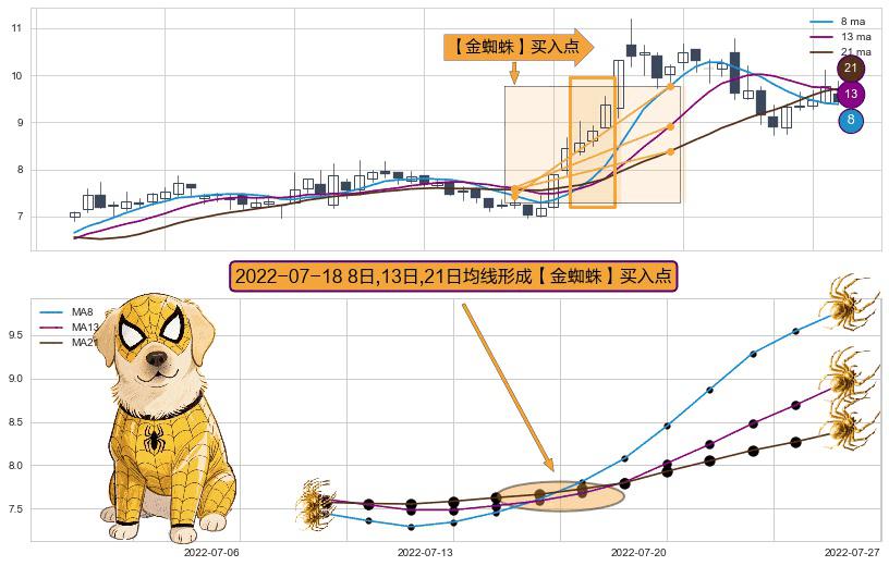 形态多维评估: ⚀ 2022-07-18日显现 8日-13日-21日均线 【金蜘蛛】买入点 看多信号,后市看涨,买入