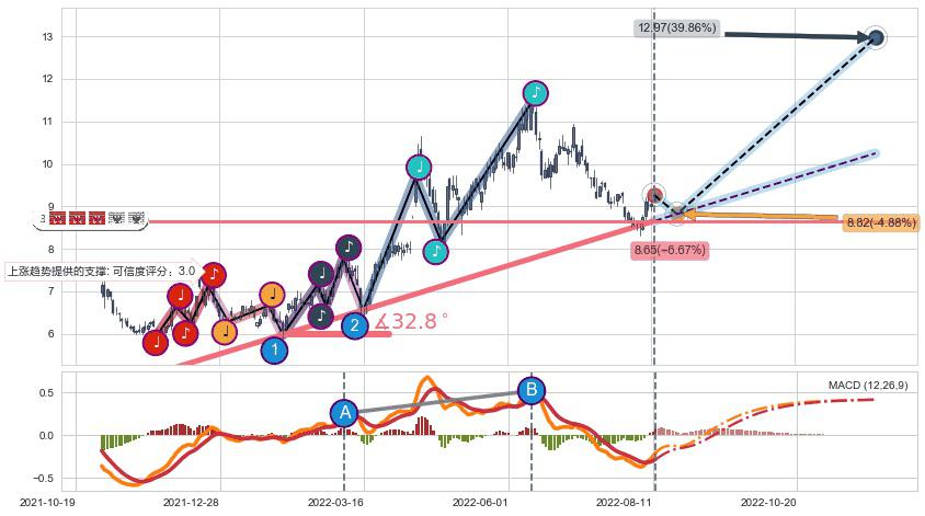 ♘ 支撑价格位8.06,可信任强度68.62%,距离最后交易2022-08-12形成的收盘价格9.27相差 -13.07%