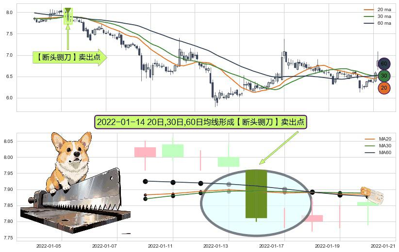 ⚀ 2022-01-14日显现 20日-30日-60日均线 【断头铡刀】卖出点 看空信号,后市看跌,卖出