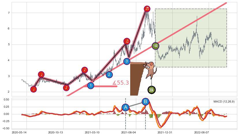 ♘ 阻力价格位6.14,可信任强度60.74%,距离最后交易2022-08-12形成的收盘价格4.87相差 +26.12%