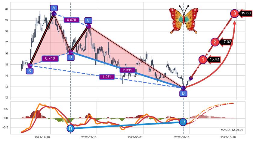 ➣ 已完成【蝴蝶】形态起点X: 2021-11-26, 终点D: 2022-08-02, 共166交易日