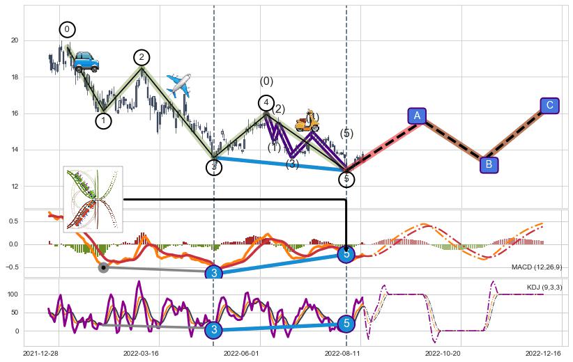 | 13 🅚:好友反攻 ➕ 🌊:波浪理论猜想下跌浪5已形成,猜想后续形成abc反弹上涨(均值回复) ☞ 看多信号 ⇥ 【🅚线】交织【图形】⇥ 综合量化分数: 51 | > |