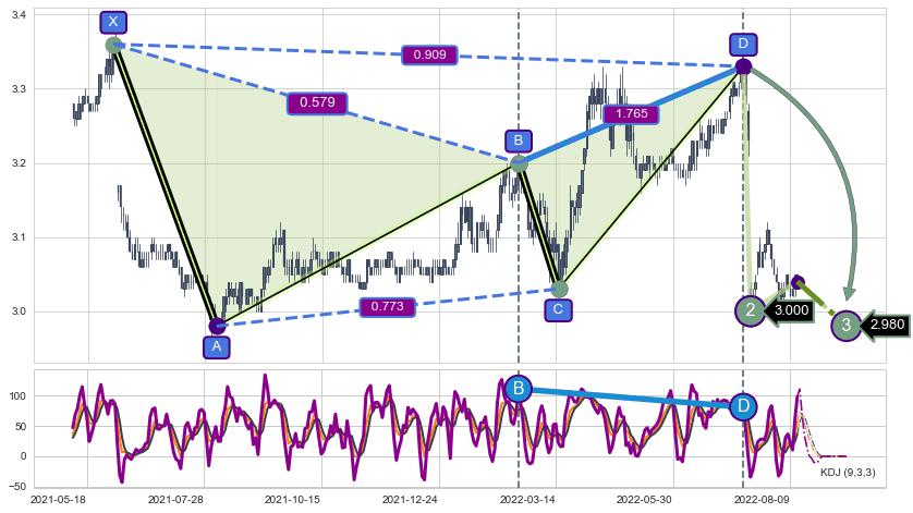 ➢ AI预测: 假定反转继续,第❸价格目标位置(2022-09-12, 2.980)